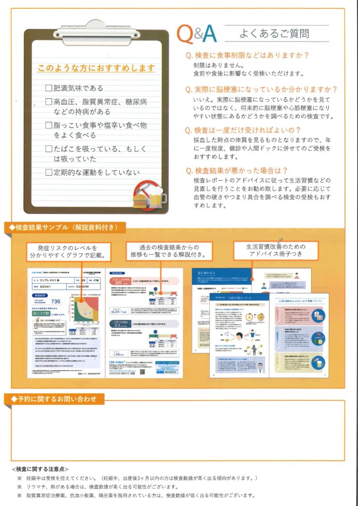 脳梗塞や心筋梗塞のリスクを調べる血液検査です。