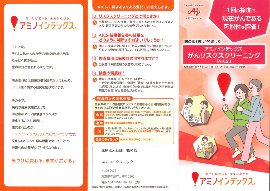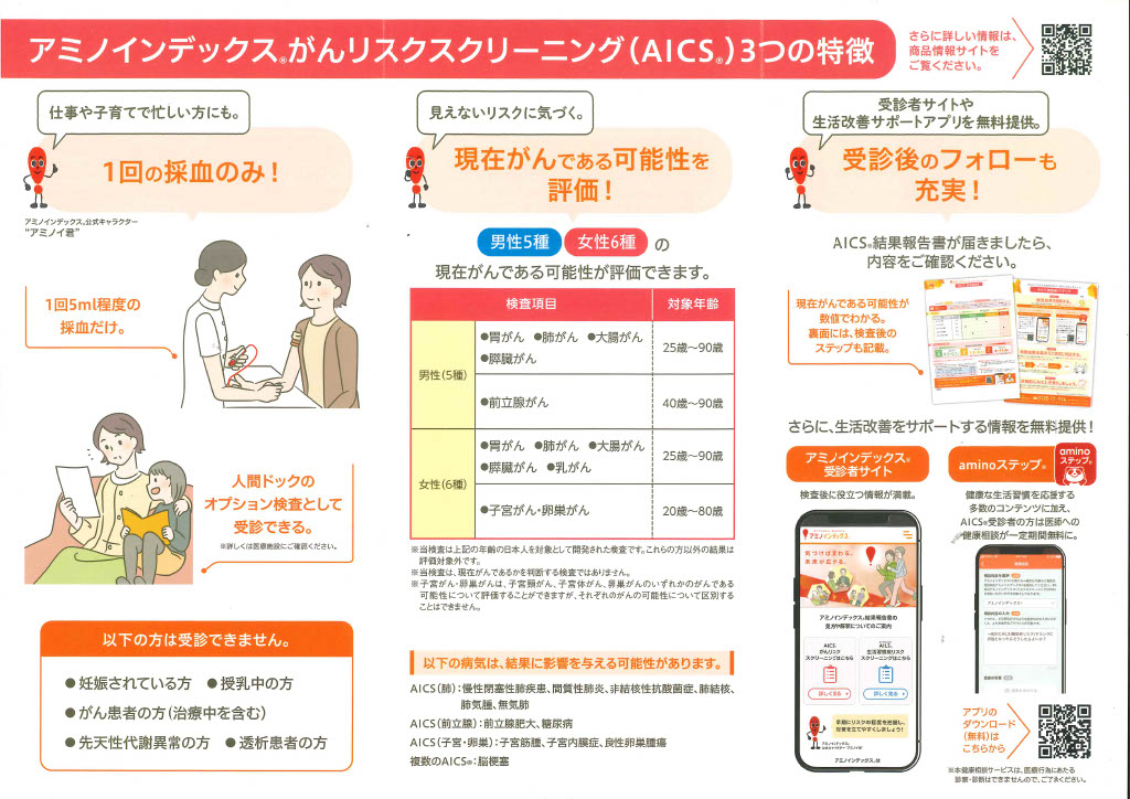 血液中のアミノ酸バランスから、がん・生活習慣病・心疾患などの発症リスクを評価する検査です。